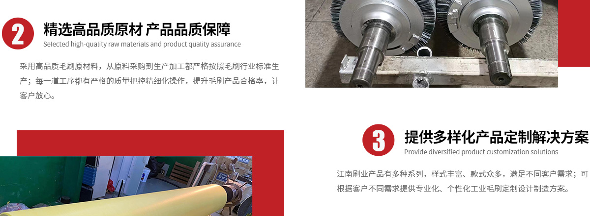 潛山江南刷業(yè)有限公司生產(chǎn)汽車噴涂鴕鳥毛毛刷,鋁板脫脂線輥刷,鋁板去氧化皮輥刷,淬火爐爐內輥,無紡布擠油輥擠干輥,無紡布真空吸油輥,電加熱打孔針輥等,以及各類涂油滾&膠輥&海綿滾&不織布輥、密封刷&鋼刷式密封、輸送帶刷式清掃器&牛體刷、鋼絲刷條&鋼絲板刷、PVC毛刷板&尼龍毛刷條、打孔鋁針輥&打孔銅針輥、圓形滾刷毛刷輥系列、圓形鋼刷&鋼絲刷輥、拋光毛刺磨料刷、試管刷&管道刷等各類刷制品。江南刷業(yè)注重...